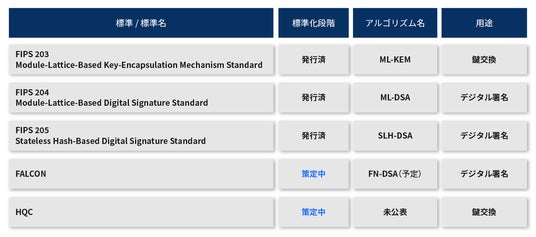NIST標準化済もしくは標準化作業中の耐量子暗号アルゴリズム