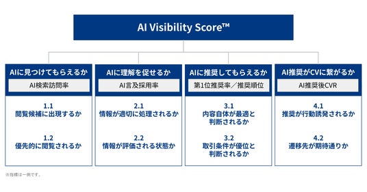 今回、特許出願した技術は、自社の製品・サービスがCVを獲得するまでのフローにおける「AIに見つけてもらえるか」という段階を評価するもので、「AI Visibility Score(TM)」の根幹を担う技術です。