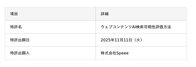 株式会社Speee(本社:東京都港区、代表取締役:大塚英樹、東証スタンダード市場:4499、以下「Speee」)は、ChatGPTなど対話型AIからの「AI推奨・CV獲得プロセス」のボトルネックを特定する、AEO対策に有効な技術について、特許を出願したことをお知らせいたします。