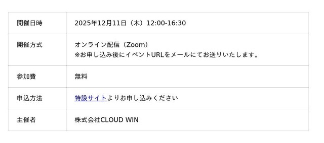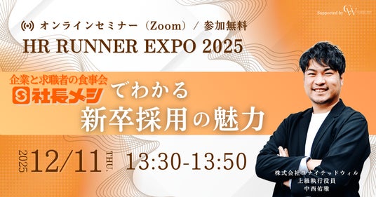 株式会社CLOUD WIN(読み:クラウドウィン、代表取締役CEO 小原 陸、以下「当社」)が主催する、「HR RUNNER EXPO 2025」を、12月11日(木)にオンラインにて無料開催いたします。