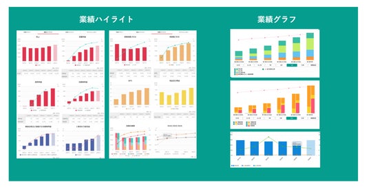 自動取得した業績データと株価関連データを独自データベースに格納しています。これを活用し、事業サマリーや業績ハイライト、業績のグラフからデータダウンロードサービスまでIRサイトに実装できます。