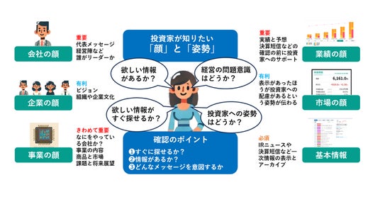 投資家がIRサイトに訪問するのは、投資情報サイトや四季報などで取り切れない情報を確認することを目的にしています。下記のポイントが主なチェック項目になります。