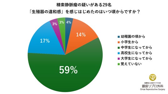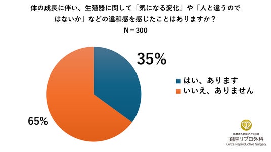 銀座リプロ外科が2025年7月に実施した全国調査(男子中高大学生300名対象)では、35%が「性器に違和感あったことがある」と回答し、そのうち約6割が中学生の時点で異変を感じていたことが分かりました。しかし、約6割が誰にも相談していないと答えており、思春期における身体の変化が相談や受診につながっていない現状が浮き彫りになりました。