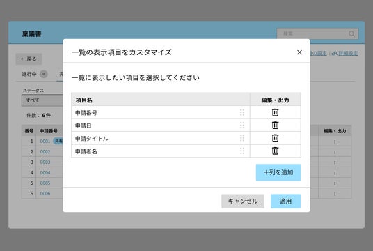 2. 探す手間をなくし、必要な文書をすぐ確認一覧表示を業務に合わせて自由にカスタマイズできます。例えば「合計金額」「取引先名」など、確認したい列だけを表示させれば、文書をいちいち開かなくても必要な情報を一覧で把握可能。日々の確認作業の時間を劇的に短縮します。
