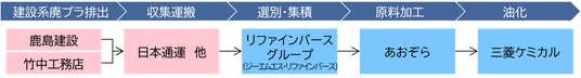 鹿島建設株式会社(社長:天野裕正)、株式会社竹中工務店(社長:佐々木正人)、NIPPON EXPRESSホールディングス株式会社(社長:堀切智)のグループ会社である日本通運株式会社(社長:竹添進二郎)、株式会社リファインバースグループ(社長:越智晶)、株式会社あおぞら(社長:藤井邦)、三菱ケミカル株式会社(社長:筑本学)の6社は、2025年8月19日、環境省の公募事業「令和7年度プラスチック資源循環に関する先進的社会実装モデル形成支援事業」に採択され、「建設現場から排出される廃プラのケミカルリサイクル実証事業」(以下、本事業)に着手しました。