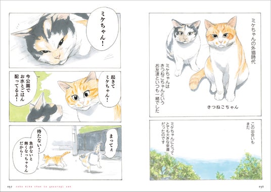(1)描き下ろし漫画もたっぷり! シロ、きつねこちゃん、チャコマロンちゃんなど、猫同士の友情やつながりを描きます。Xフォロワー17万人超えのにごたろ先生のカラー漫画で、丁寧に漫画化しました。
