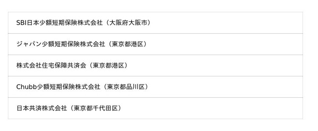 【「スマート申込」と連携している少額短期保険会社(2025年10月末現在・50音順にて表記)】
