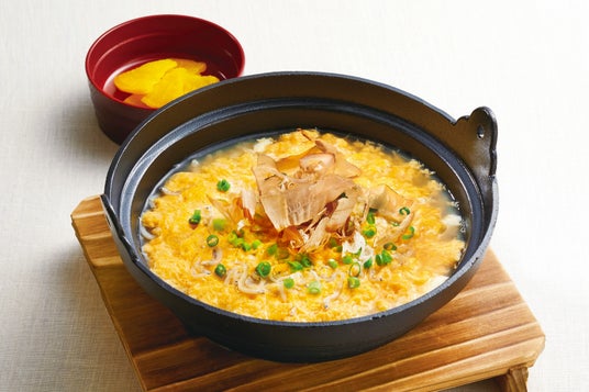 ふわふわの玉子と、タンパク質、ビタミンD、ビタミンB12などが豊富な釜揚げしらすを使った雑炊。食欲がないときや、肌寒さを感じるこの季節にピッタリな、ホッと心も身体も温まる優しい一品です。