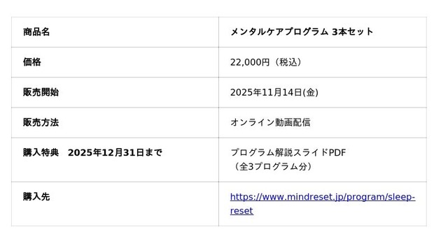 プログラム購入HP:https://www.mindreset.jp/program/sleep-reset