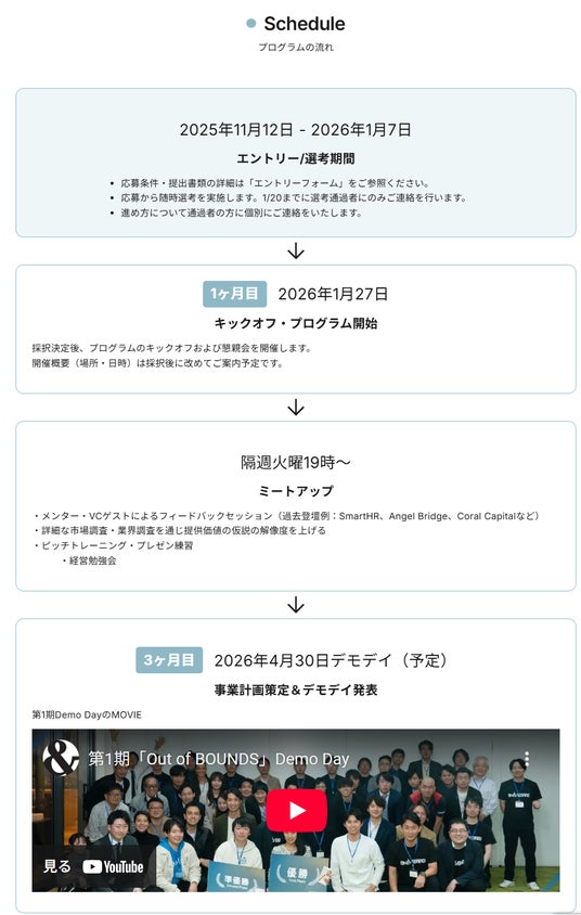 ON&BOARD株式会社(所在地:東京都港区虎ノ門、代表取締役:下平将人、中山航介 以下「当社」)は、11月12日(水)より、創業支援プログラム・第4期「Out of BOUNDS」の参加者の募集を開始することをお知らせいたします。