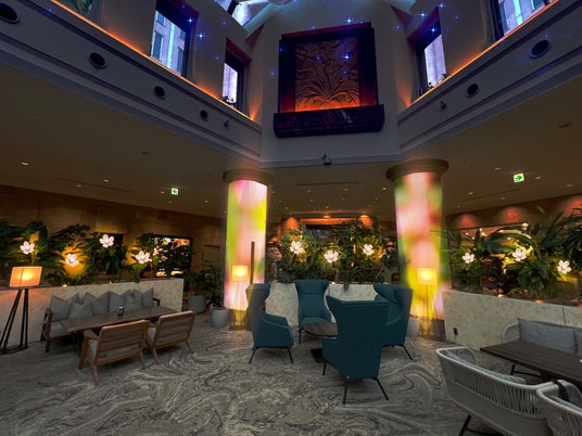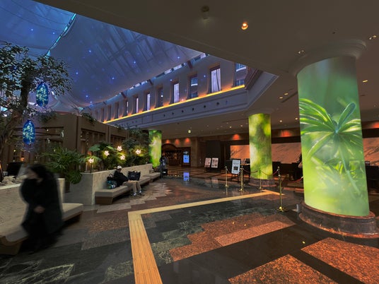 本作品は結・流・環をテーマに、やんばるの森や海の「見えない自然のリズム」、自然と生命の循環や繋がりを感覚的に再発見できる体感型ライトアートです。また、展示期間中のロビーラウンジでは、やんばるに焦点を当てたオキナワンカクテルが楽しめる他、クリスマスにはハイティーもご用意しています。当ホテルのコンセプトを体現する環境音楽「AMBIENTAL」を聴きながら、アート作品とともにこの場でしか体験できない贅沢な時間をお過ごしください。