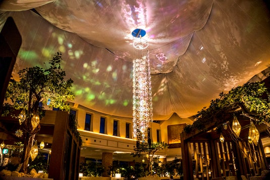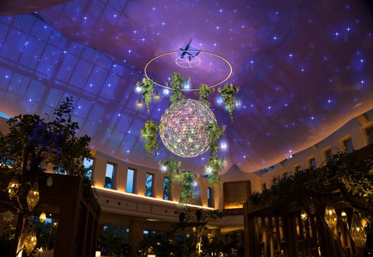約700個のクリスタルガラスを散りばめた光の球体から普段は目に見えない七色のスペクトルが輝きます。