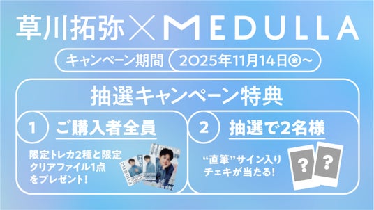 MEDULLA公式Xのキャンペーン対象投稿をリポストしていただいた方の中から抽選で2名様に、草川拓弥直筆サイン入りチェキが当たるリポストキャンペーンも開催中!