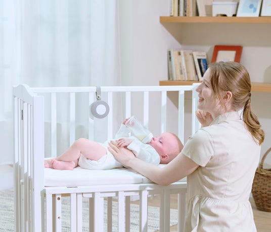 赤ちゃんと過ごす“その瞬間”を大切に、静かな操作感・やわらかな使い心地を、日常の風景の中で描いています。