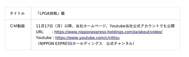 本CMは、NXグループの長期ビジョン「グローバル市場で存在感を持つロジスティクスカンパニー」を目指して世界への挑戦を続けているNXグループと、今年活動の舞台を日本から世界に移した原プロに共通する「世界への挑戦」を、原プロの米国・エプソンツアーでの活躍シーンと共に表現しました。