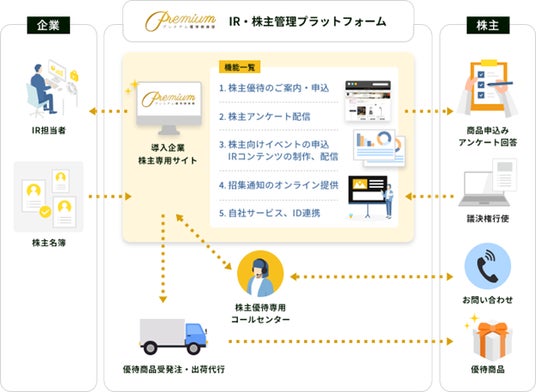 「プレミアム優待倶楽部」は、上場企業の株主の方を対象に、導入企業が発行する株優待ポイントを使って、お好きな商品を自由に選べる国内最大級の株主管理・株主優待デジタル化サービスです。