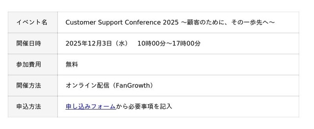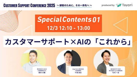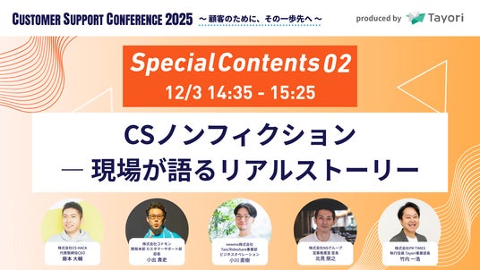 株式会社PR TIMES(東京都港区、代表取締役:山口拓己、東証プライム:3922、以下:PR TIMES)が運営するカスタマーサポートツール「Tayori」(読み:タヨリ)は、2025年12月3日(水)に、"顧客のために、その一歩先へ"をコンセプトに、世の中のカスタマーサポートをみんなで一歩前に進めるカンファレンス「Customer Support Conference 2025(カスタマーサポートカンファレンス2025)」を開催します。カスタマーサポートカンファレンス2025は、カスタマーサポートに従事するすべての方々へ明日から使えるノウハウや最新トレンドを、カスタマーサポートサービスを提供するプロフェッショナルや現場で活躍する担当者たちとお届けするオンラインカンファレンスです。