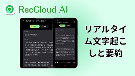 AIを活用した音声・動画プラットフォーム「RecCloud」は、モバイルアプリ(iOS/Android)に新機能「リアルタイム文字起こし(リアルタイム転写)」を搭載しました。
