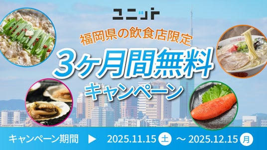 ナノ・マイクロインフルエンサーと飲食店をつなぐグルメ特化型インフルエンサープラットフォーム「ユニット」を運営する株式会社UNIT(本社:東京都渋谷区、代表取締役:岡野 剛士)は、福岡県の飲食店を対象とした「3ヶ月間無料利用キャンペーン」を2025年11月15日(土)よりお申込受付を開始いたします。