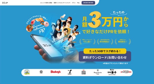 - 提供内容:グルメ特化型インフルエンサープラットフォーム「ユニット」スタンダードプラン