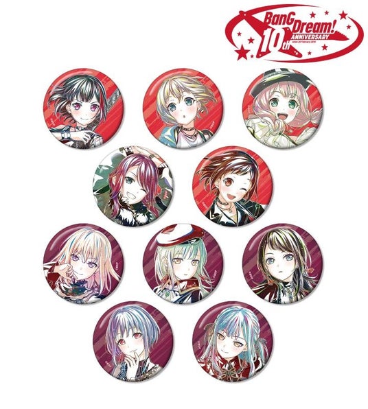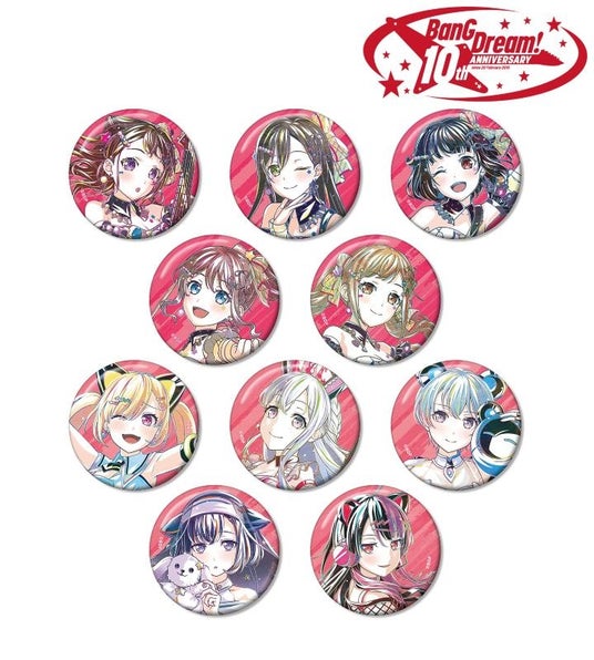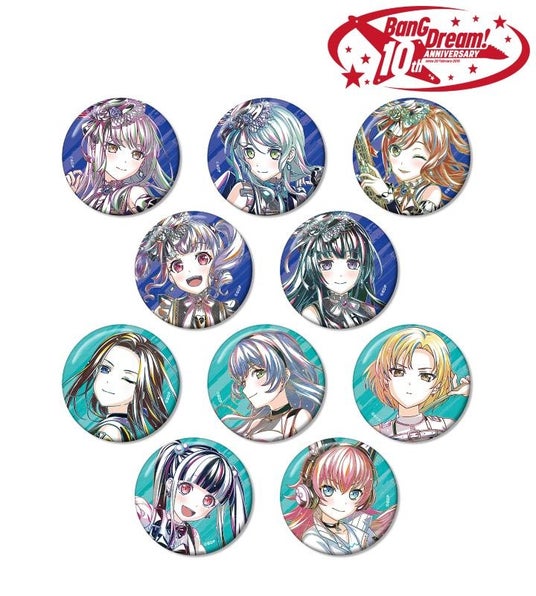 丸山 彩、氷川 日菜、白鷺 千聖、大和 麻弥、若宮 イヴ、高松 燈、千早 愛音、要 楽奈、長崎 そよ、椎名 立希のイラストを新たなタッチで魅力的に表現し、缶バッジに仕上げました。