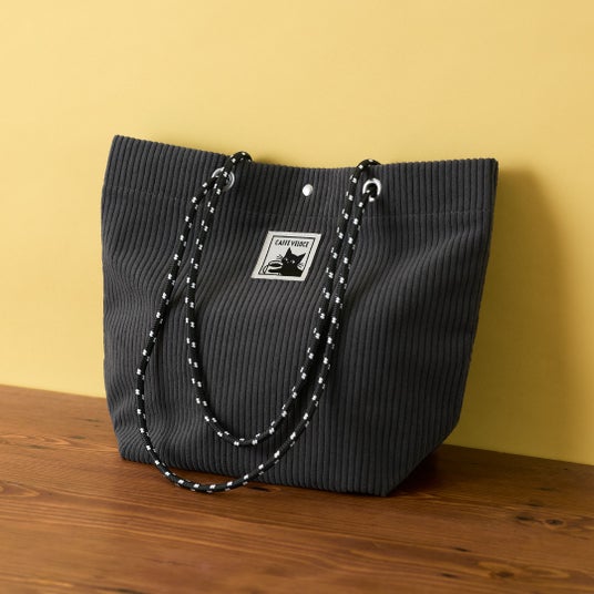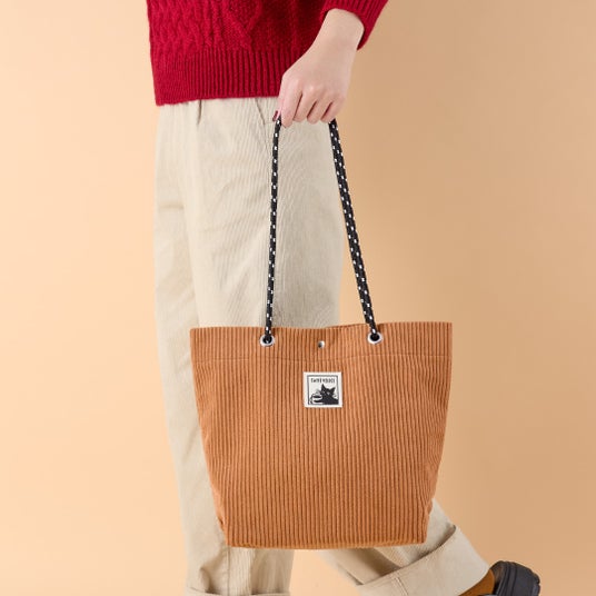 寒い冬のお出かけに便利な「黒ねこコーデュロイバッグ」