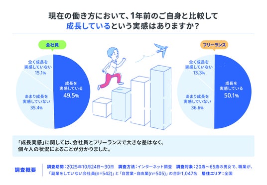 ■会社員・フリーランスに差はなく、約半数が「成長を実感」