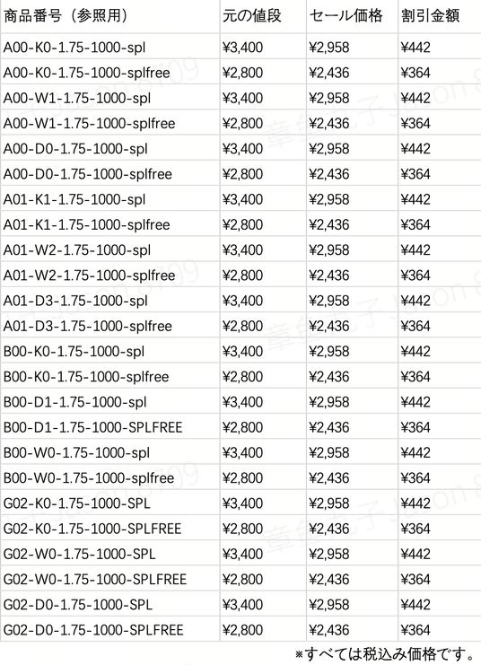 3.1 対象フィラメントはまとめ買いで5巻以上(5巻含み)25%OFF、10巻以上(10巻含み)35%OFFとなります。