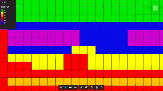 3Dボクセルを2D表示した様子。Googleマップのように横スクロールできます