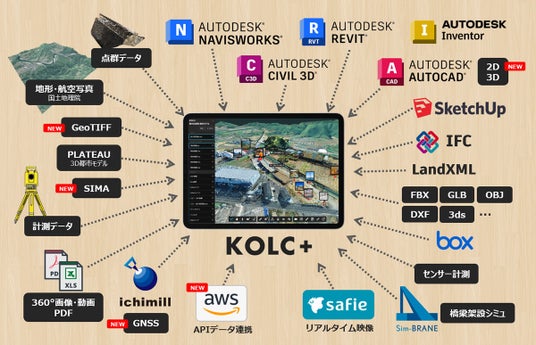 KOLC+は、BIM/CIMモデルや点群をクラウド上で統合・共有・活用できる「BIM/CIMクラウド」です。国土交通省などの情報共有システム(ASP)としても利用でき、利用社数は500社以上になっています。国土交通省の「建築GX・DX推進事業」での補助対象ソフトウェアにも認定されています。