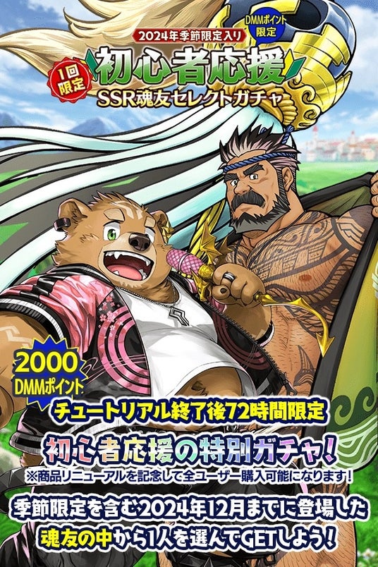 季節限定を含む2024年12月までに登場した魂友、神器の中から1人を選べる「初心者応援 2024年季節限定入りSSR魂友セレクトガチャ」「初心者応援 2024年季節限定入りSSR神器セレクトガチャ」、Lv90まで強化済みの即戦力魂友・神器を選べる「初心者応援 即戦力セレクトSSR確定ガチャ」が登場!