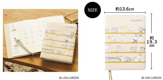 リサ・ラーソンの人気のイラスト「スケッチねこたち」が月替わりで登場する、シンプルでおしゃれなデザイン。日々の予定管理から日記代わりまで、幅広く活躍♪