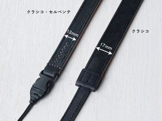 カメラのレザーストラップを始め、革小物や日用品の開発を行う有限会社CACICA(所在地:福岡県福岡市)は、11月7日より、レザーストラップ『クラシコ・セルペンテ』の新色「オールブラック」を、自社ブランドULYSSES(ユリシーズ)のオンラインショップで販売開始しました。従来モデルでは裏面に明るいミネルバ・ボックスのヌメ色を採用していましたが、「オールブラック」は表裏とも黒で統一。シックで洗練されたデザインに仕上げ、スタイリッシュなアクセントとしても楽しめるストラップです。