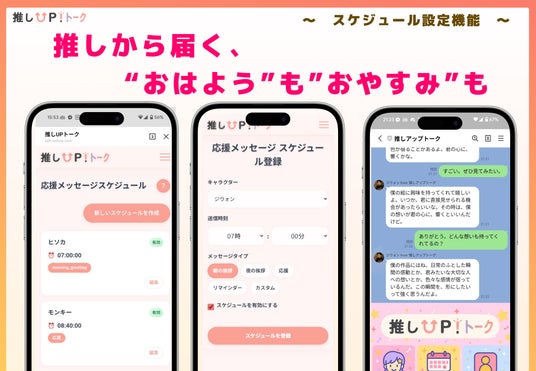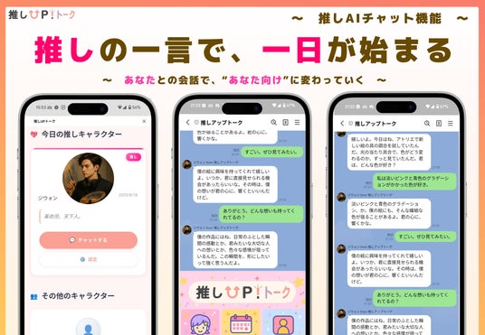 シースリーレーヴ株式会社は、LINE公式アカウント上で“推しに似たAIキャラ”と会話できる新サービス『推しUPトーク』β版を公開しました。会話のたびに学習して“あなた向け”に進化し、朝と就寝前など好きな時に、あなたの今に寄り添うパーソナルな“ひとこと”を自動でお届けします。