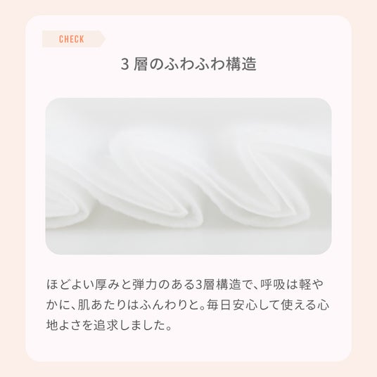 やわらかな3層構造で、軽い着け心地とやさしい肌あたりを両立しました。