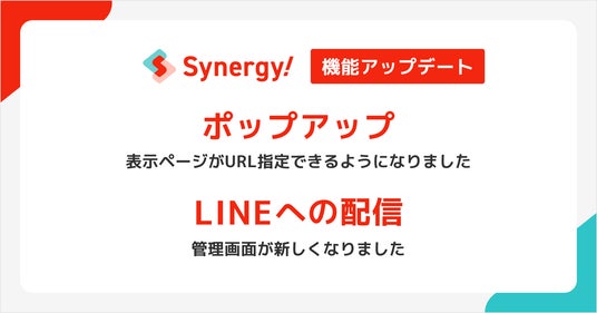 CRMから進化したマーケティングSaaS「Synergy!」を提供するシナジーマーケティング株式会社(所在地:大阪市北区、代表:奥平 博史、以下:当社)は、2025年11月より、Webサイト訪問者へのアプローチを強化する「ポップアップ機能」のアップデートと、「LINEへの配信機能」 の強化を実施したことをお知らせします。