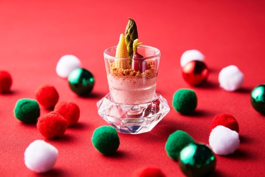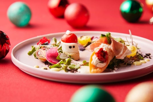 ツリーやリース、サンタさんなど…クリスマスのオーナメントたちが箱から飛び出してきたような、にぎやかでかわいらしく、でもしっかりお腹も満たすコース料理をお楽しみいただけます。