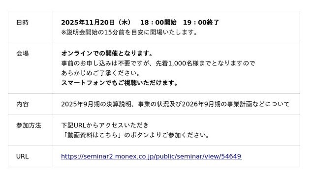 なお、本説明会は後日マネックス証券のYouTubeチャンネルにて、オンデマンド配信を行う予定です。