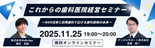 口コミ、SEO・MEO対策などのWEB施策を駆使した新患獲得や、訪問歯科の立ち上げ時からの集患のポイント、さらに業界動向を踏まえた今後の戦略まで、明日から実践できる具体策をお伝えします。