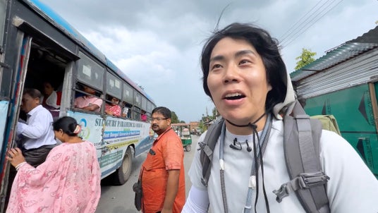 11月16日(日)放送の#8では、6日間、約1200kmを移動したバングラディシュの旅を終え、ついに南アジア旅2つ目の国・インドへ。バングラデシュの国境を越え、無事インドに入国したくるまは、国境近くにある地方都市・シリグリ行きのバスを探しますが、満員状態のバスに「パンパンなんですけど!」「乗れる?マジ?」と唖然。意を決して乗り込んだものの、バスが出発すると、立ち乗り状態のくるまの目の前を割り込むように移動する男性が…。満員のバス車内を行ったり来たりする男性に、くるまは思わず「いま無理でしょ、絶対」「何がしたいんだよ」と苛立ちを見せますが、のちにその男性は乗務員であることが判明しました。