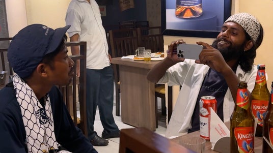 夕食を終え、「ちょっと飲んだんで戻れないです」とバーをハシゴしたくるまは、インドのウィスキーとシーシャを味わいながら、「今日相方に子ども生まれたんですよ」「子どもが生まれるってすごくないですか?」と語り出します。「『生まれました』と、生まれた時に来てて」と相方・松井ケムリからLINEで報告があったことを明かすと、「俺テンパっちゃって、バングラデシュで。『おめでとうございます』と何か一言付け足したくて、『すごい』って送ってました」と微妙な表情で打ち明けました。ホテルへ帰る道中の三輪タクシーでは、くるまが「カラオケしてぇ」と、突如サザンオールスターズの『真夏の果実』を熱唱。「相方結婚したんですよ」と同じ言葉を繰り返すなど、すっかり酔っぱらった様子でインド初日を終えました。