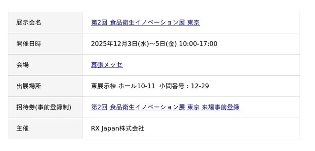 ▶ 「第2回 食品衛生イノベーション展 東京」特設サイトはこちら