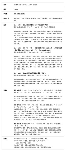 顧客応対の効率化や生成AI活用に関心をお持ちの方は、ぜひこの機会にご参加ください。