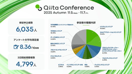 創造性と技術力で多様なITサービスを展開する株式会社エイチームホールディングスのグループ会社であるQiita株式会社(本社:名古屋市中村区、代表取締役社長:柴田健介)は、エンジニア向けオンラインイベント「Qiita Conference 2025 Autumn(キータ カンファレンス 2025 Autumn)」を2025年11月5日(水)~11月7日(金)の3日間にわたり開催しました。