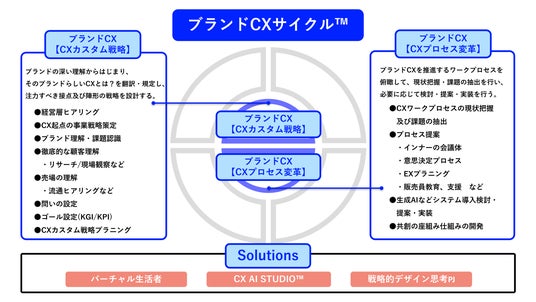 上記の戦略とプロセス変革に基づき、以下の具体的なソリューションを通じて「ブランドCXサイクル(TM)」を回し、事業成長を加速させます。