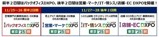 ※一度の来場事前登録で、前半・後半すべての展示会にご入場いただけます。