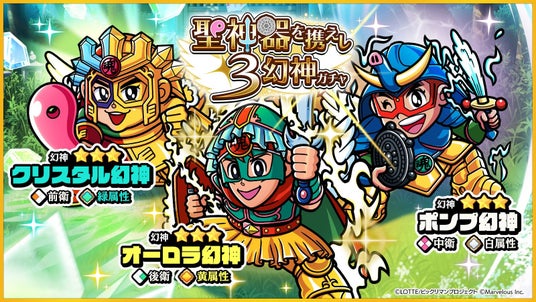 新たな☆3キャラクター「[幻神]オーロラ幻神」「[幻神]クリスタル幻神」「[幻神]ポンプ幻神」が登場する、「聖神器を携えし3幻神ガチャ」を開始いたしました。