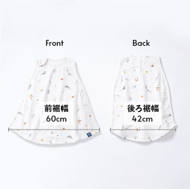 寝ている間も足をよく動かす赤ちゃんのために、前裾を後ろより広めにデザイン。可動域をしっかり確保することで、赤ちゃんの快適な眠りをサポートします。