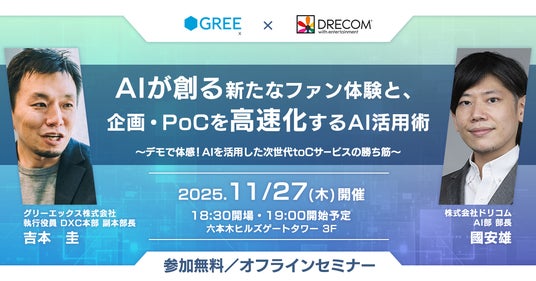ビジネスにおけるAI活用が急速に進む中、BtoCサービスにおいては、その可能性を最大限に引き出せている企業はまだ多くありません。本セミナーでは、ゲーム業界を牽引してきた両社が持つ知見と最新のAI技術を掛け合わせ、「新たなファン体験の創出」と「企画・開発業務の高速化」を両立させる具体的な手法を、デモンストレーションを交えてご紹介します。