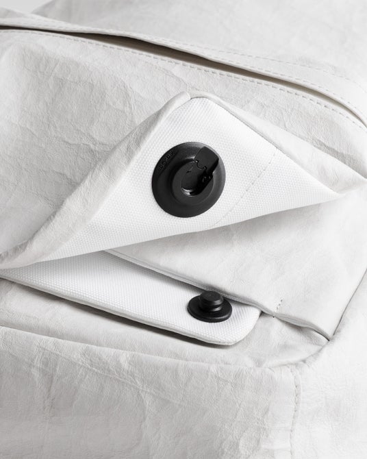 ショルダーテープや金具、背面素材まで、ホワイト・ブラックともに外観は全て同系色で統一。機能性を持ちながらも美しいプロダクトに仕上げるため、ストイックにミニマルな美しさを追求したデザインです。